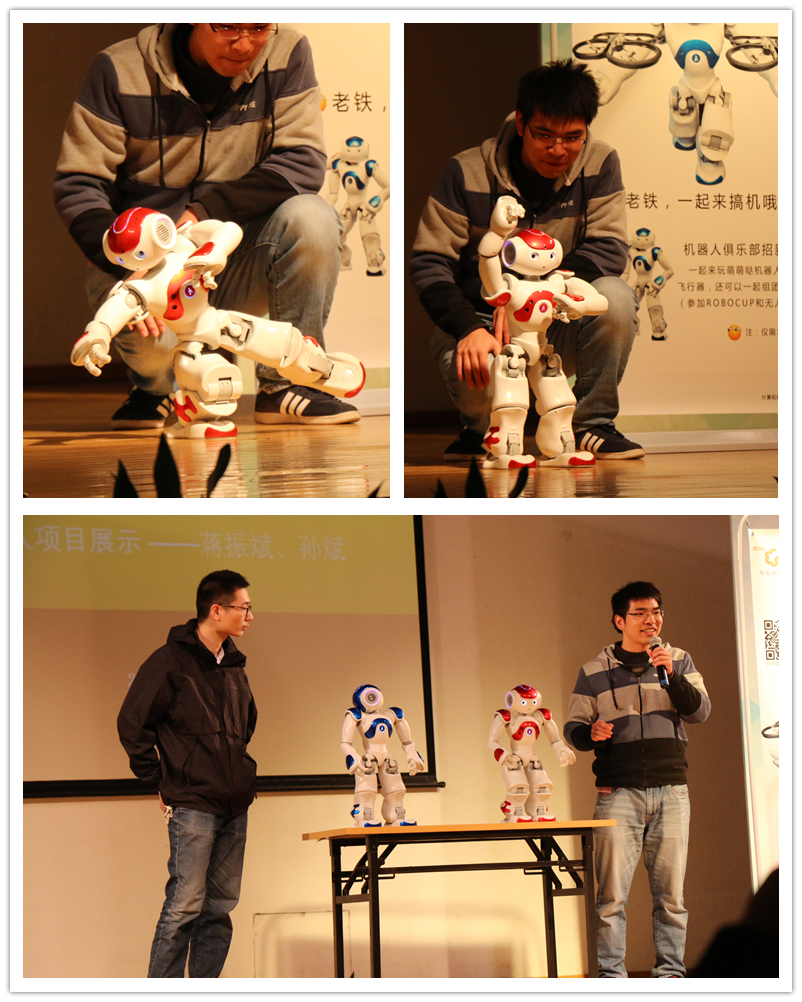 蒋振斌和孙斌同学带来了精彩的机器人展示,2个Nao机器人在现场表演太极拳和现代舞蹈让同学们大开眼见。本次文化节也在同学们热烈的掌声中落下帷幕。