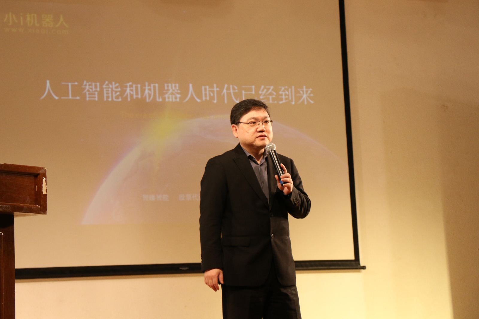 小i机器人总裁朱频频为大家带来了主题演讲《人工智能和机器人时代已经到来》。朱总从对AI技术的历史、技术、商业发展、未来进行了更为细致的演讲,最后以小i机器人为例给同学们对人工智能现状、技术发展、商业发展模式进行深入的解析,让同学们对AI技术有了新的认识。