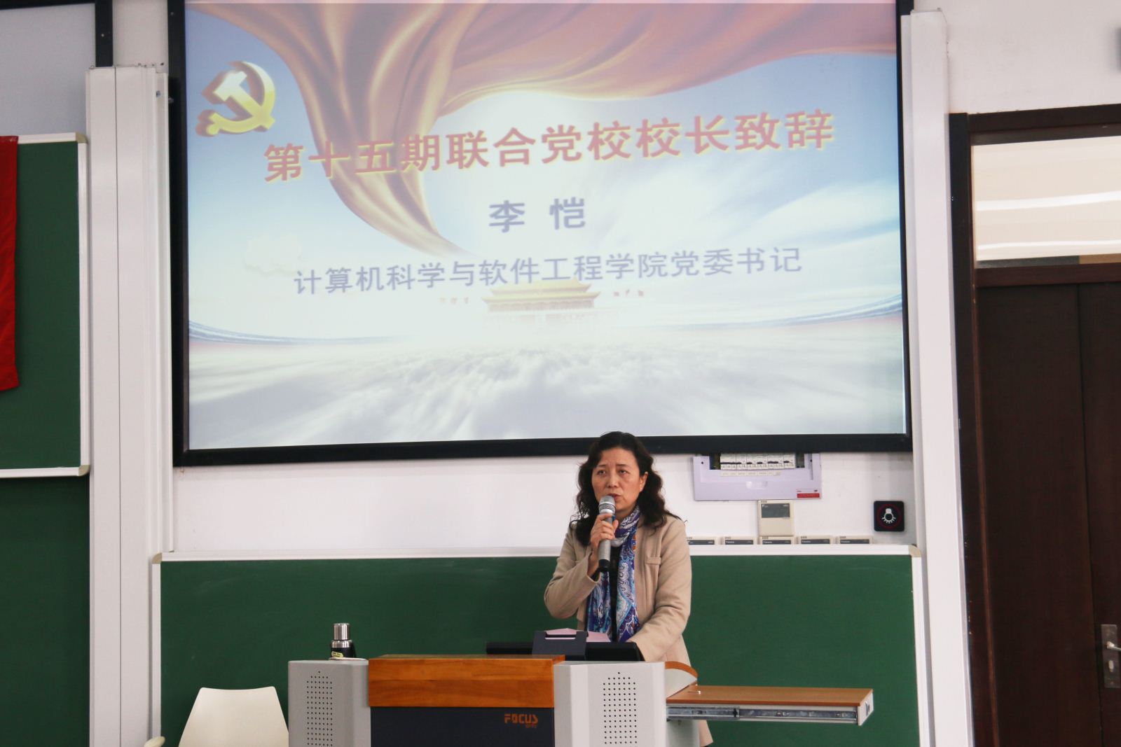 典礼以一曲雄浑激昂、催人奋进的“国际歌”拉开序幕。本期联合党校校长李恺致辞,她在致辞中首先表达了对本期联合党校81名学员的欢迎和祝贺,其次对在场所有学员阐述了一个党员身上应该承担的责任和义务,她指出“党校是我们学生政治觉悟提升、思想升华的催化场所”,勉励同学们要树立远大理想,珍惜学习机会,在学习中不断发现更加优秀的自己。