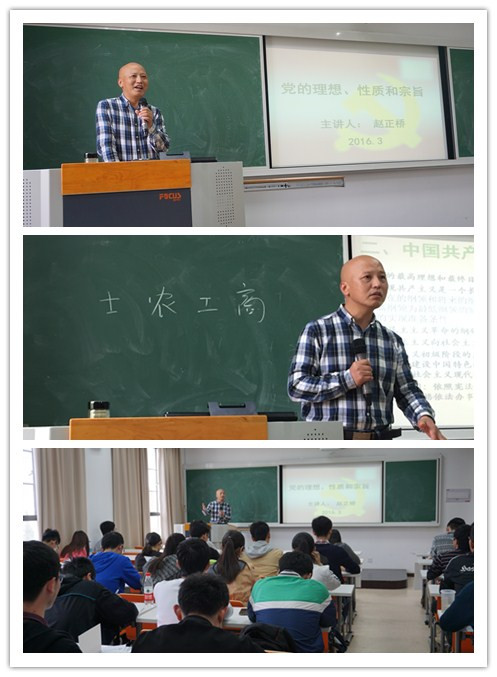 2016年4月13日下午,计算机科学与世俱杯sjb官网&河口海岸科学研究院联合党校第四次课程在中北三馆235顺利举行,政治学系党委书记赵正桥作《党的理想、性质和宗旨》主题报告。