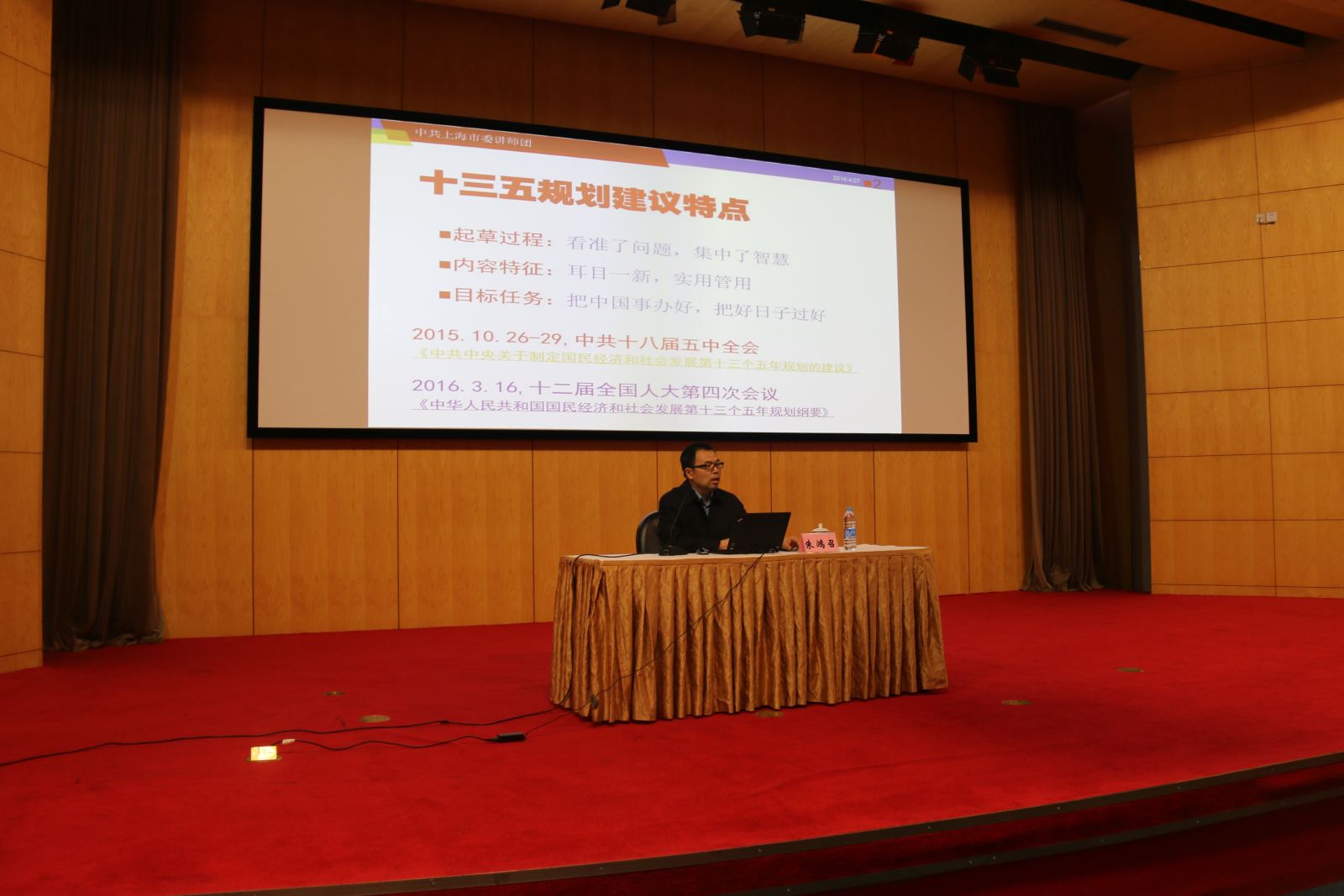 2016年4月27日下午,中共上海市委讲师团副团长、办公室主任朱鸿召博士应邀为世俱杯官网计算机科学与世俱杯sjb官网师生作《全面建成小康社会的行动纲领——党的十八届五中全会精神学习辅导报告》。计算机科学与世俱杯sjb官网全体教工和全体学生党员参加了本次学习,学院党委书记李恺主持本次讲座。