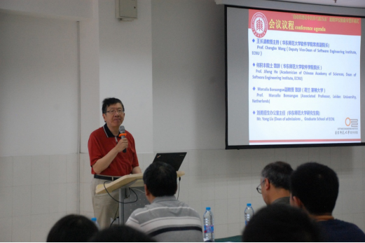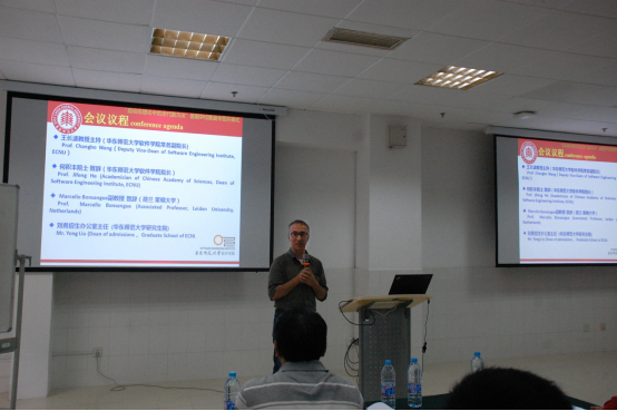 来自荷兰莱恩大学的Marcello Bonsangue教授对近几年和华东师范大学的科学研究合作、硕博士生联合培养等全方位合作进行介绍,并希望未来能通过教育部可信软件国际联合实验室平台进行保持更加密切统一的合作关系。