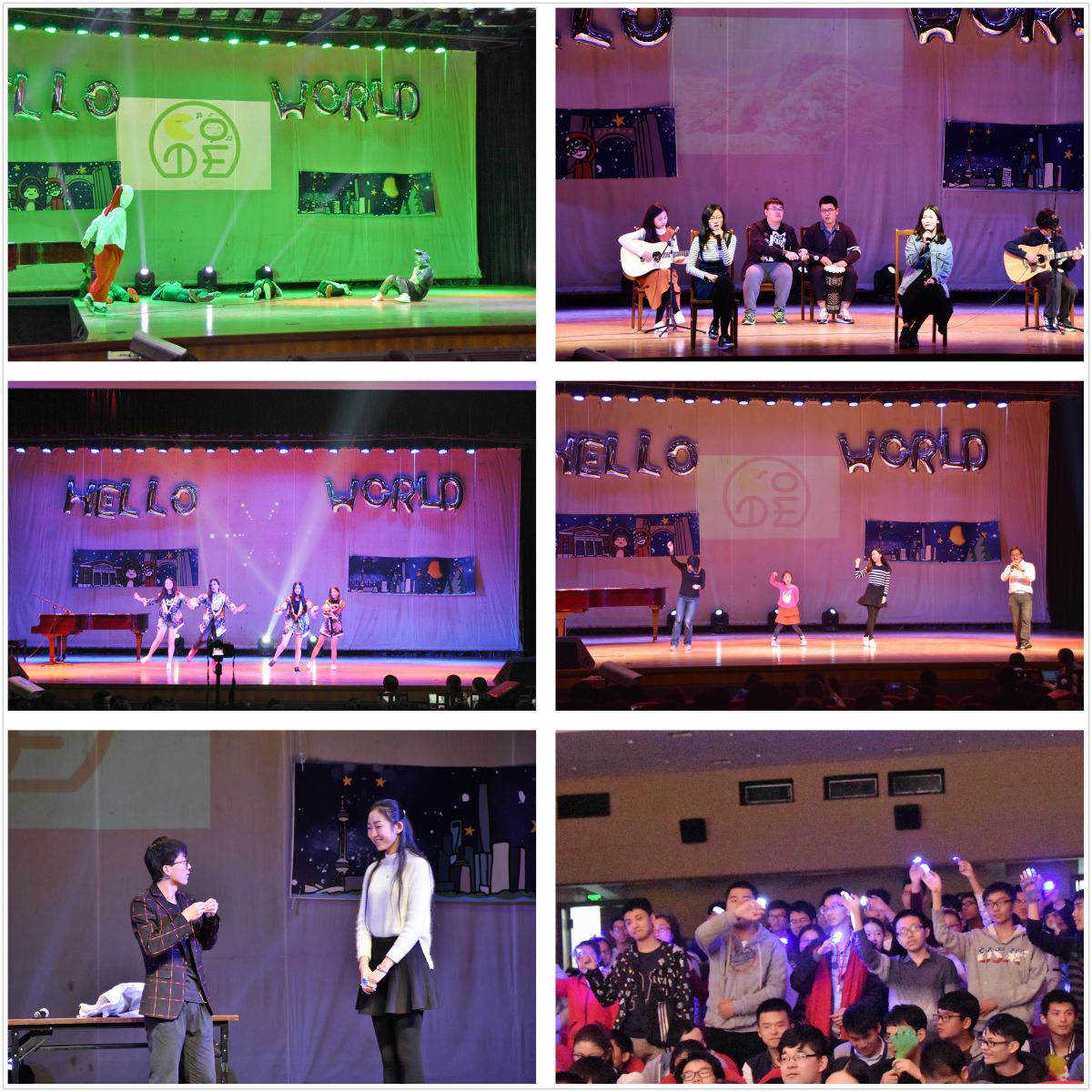 歌曲《情非得已》和《yellow》让观众们感受到不同文化的多样魅力。魔术社社长张帅鹏用幽默风趣的方式演绎了一场精彩魔术。计科一班的同学们手持蓝烛合唱了《平凡之路》。在新生的一众精彩表演后,研究生学姐学长们为我们带来了热舞串烧。紧接着计科二班的合唱《奇迹再现》将我们带回到了那个守在电视机前看各种动画片的童年。辅导员叶林娟携女儿和赵婧媛、朱丹老师也为我们带来了歌舞《大王叫我来巡山》,为晚会助兴。
