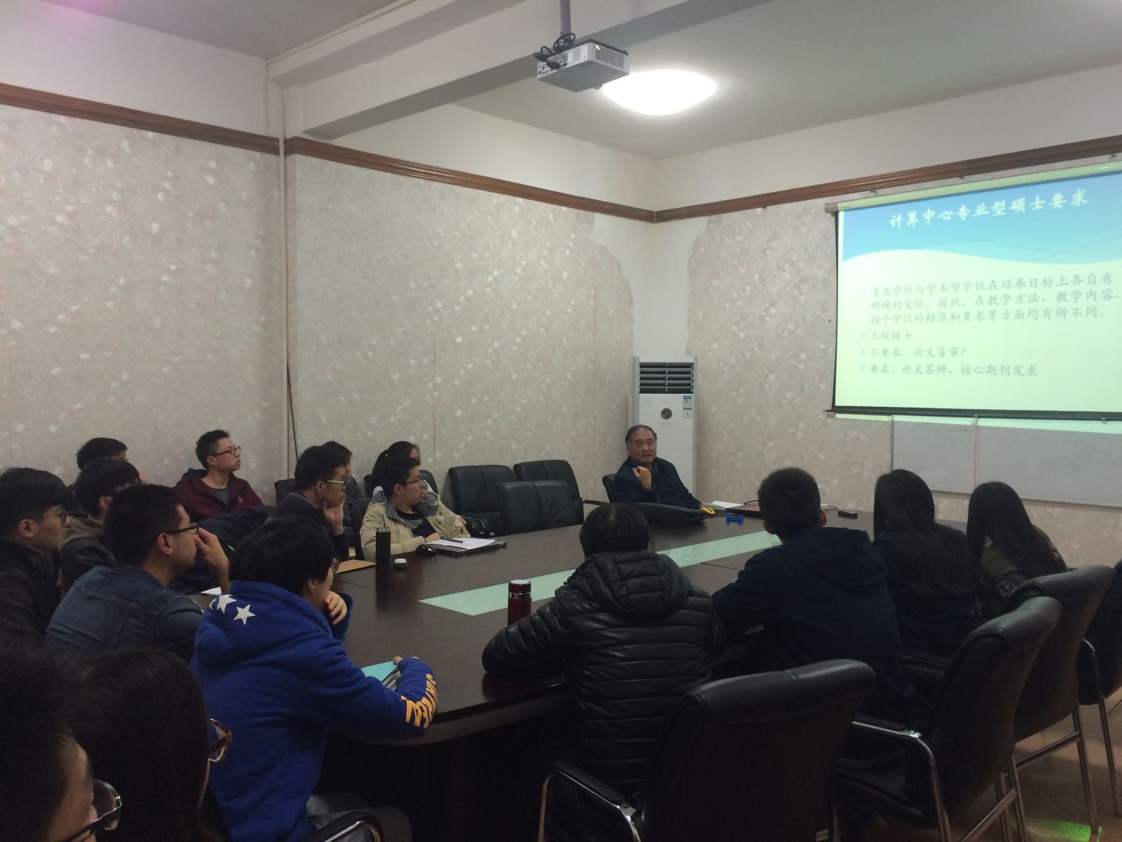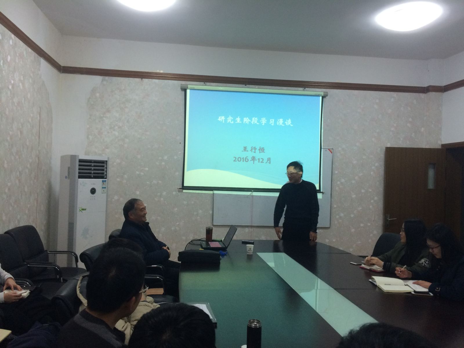 2016年12月7号下午三点,我院计算中心在计算机楼会议室214,学院关工委王行恒教授为我院2016级全体研究生带来一场“立足自身发展,打好坚实基础——研究生阶段学习漫谈”的精彩讲座。计算中心主任郑骏教授应邀参加此次活动,本次讲座由计算中心团支书赵红主持。