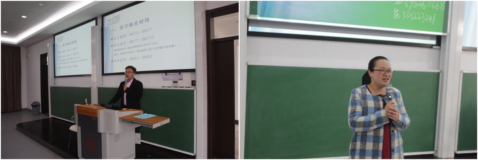 朱丹老师首先为大家介绍了实习的主要安排和注意事项,他从实习相关时间节点、推荐规则、过程要求等方面介绍了2014级实习具体工作安排,帮助同学们更进一步了解实习的各种要求,并希望同学们对其进行合理的规划。随后,朱丹老师又为大家分析了近年来的就业形势,并针对同学们可能出现的疑惑进行了解答。最后他以自己的经历告诉大家,无论是实习或是考研,最重要的是坚持。找到奋斗方向后,坚持为目标而努力。