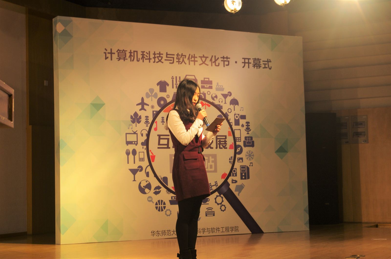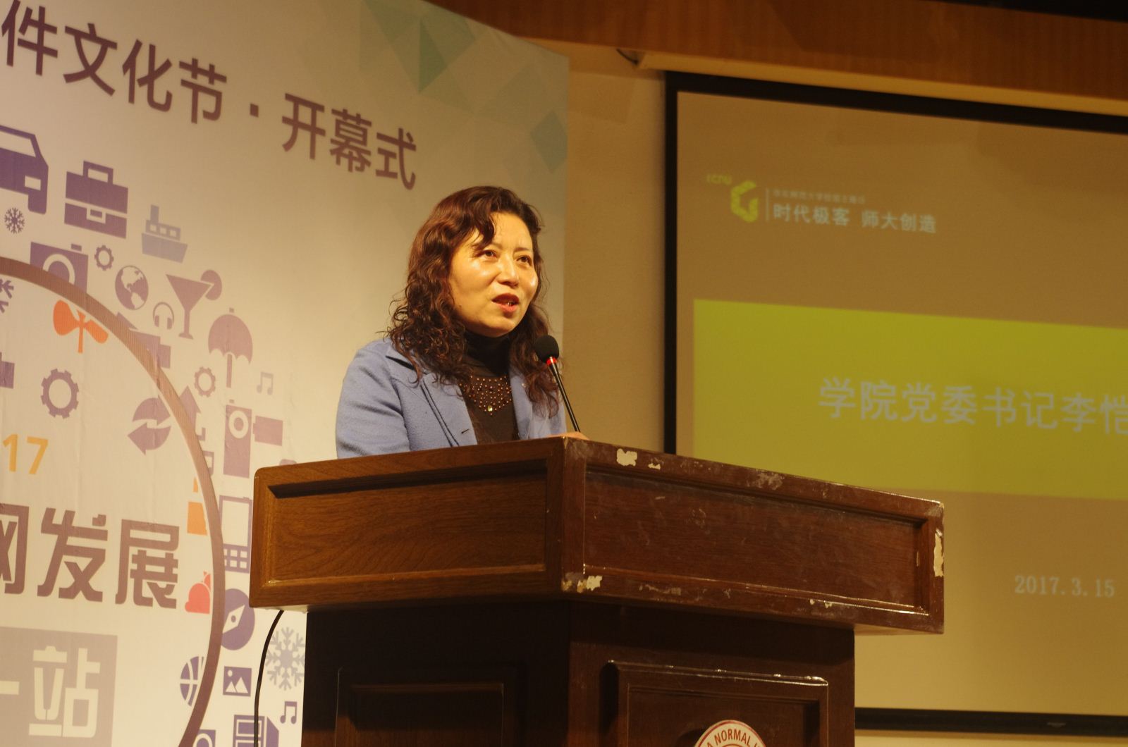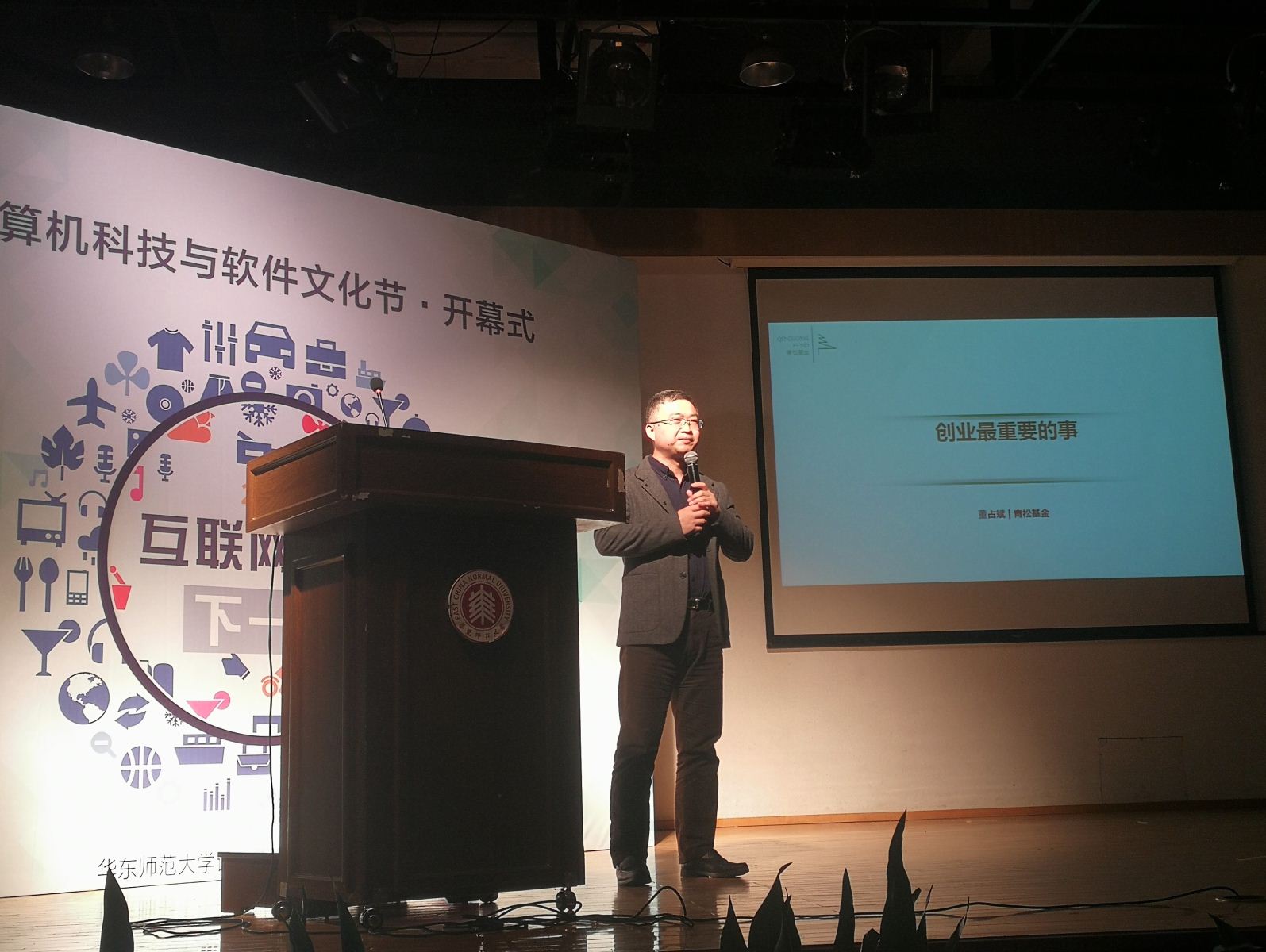 3月15日上午大学生活动中心报告厅,全院数百名师生济济一堂,共同迎来华东师范大学2017年计算机科技与软件文化节开幕式。本次活动由华东师范大学计算机科学与世俱杯sjb官网团学联主办,并得到了学校学工部、团委大力支持。学院党委书记李恺、常务副院长王长波、副书记兼副院长洪燕、副院长王晓玲、副院长姜宁康、计算机系主任贺樑等领导出席了开幕式,小i机器人总裁朱频频、青松基金联合创始人董占斌为同学们带来了精彩的主题演讲。