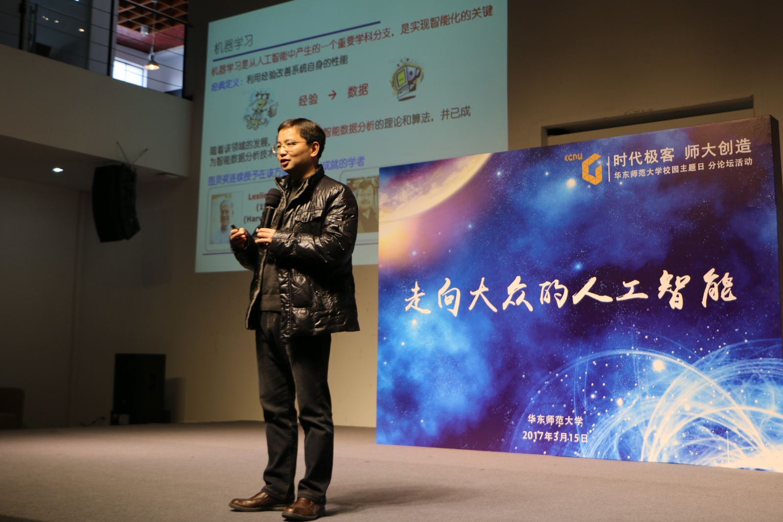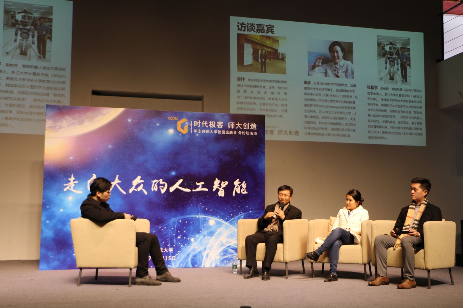 本次活动由计算机科学与世俱杯sjb官网、教育学部、心理与认知科学学院、精密光谱国家重点实验室联合举办。著名人工智能专家、南京大学周志华教授莅临活动现场并为同学们带来了一场以“人工智能漫谈”为题的精彩演讲;计算机与软件学院张新宇副教授、心理与认知科学学院蔡清副教授、教育学部晨晖学者吴忭三位青年学者则围绕各自研究领域展开讨论。现场另有三个学生团队分别进行了VR、无人机、机器人、脑机接口项目的展示。