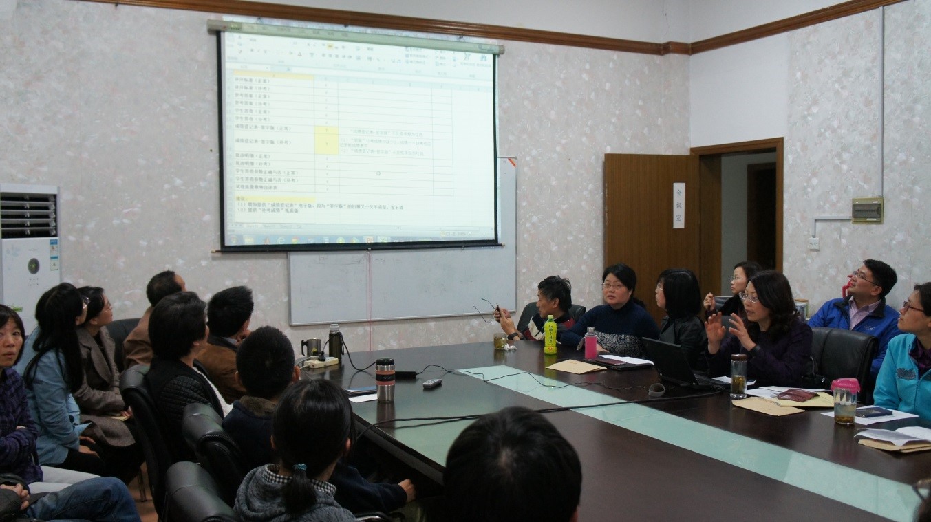 小长假后第一天,计算中心全体党员与所有本科任课教师举行面对面交流活动,对检查的结果进行认真的讨论分析。