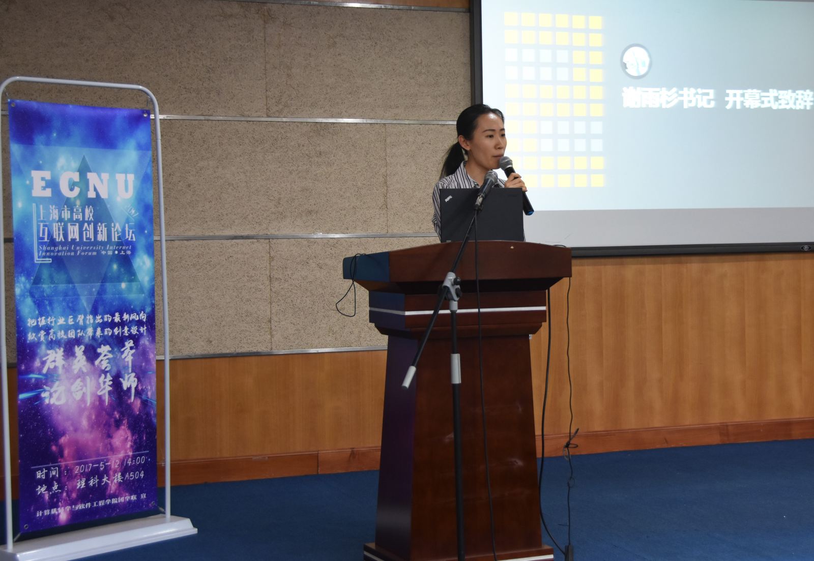 5月12日下午,上海市高校互联网创新论坛在世俱杯官网中北校区理科大楼A504报告厅隆重举行。此次论坛由共青团华东师范大学委员会主办,计算机科学与世俱杯sjb官网承办,来自复旦大学、上海交通大学、同济大学、上海科技大学、东华大学等高校的学生齐聚一堂,与世俱杯官网学生共同分享各自的创新实践经历,探讨前沿技术,认识行业发展。同济大学软件学院团委书记刘伟伟、东华大学计算机学院团委书记姜霖霖、游族网络技术专家委员会主席达万春等校外嘉宾出席了论坛,另外世俱杯官网团委副书记谢雨杉,计算机与软件学院党委书记李恺、副书记洪燕、副院长姜宁康也莅临论坛现场。