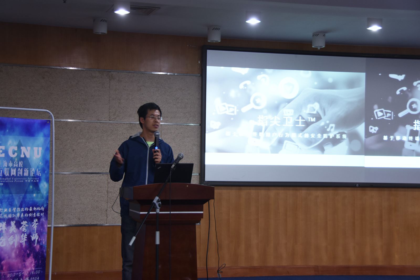 接下来,由复旦大学、上海交通大学、同济大学、华东师范大学的优秀学生创新团队各自进行了项目展示。上海交通大学《基于行为指纹的移动终端身份认证系统》展示了手机终端全新的加密验证保护体制。该项目突破了现有基于指纹和密码的安全防护体系,采用用户的行为指纹作为判断媒介,提供移动平台的入侵检测功能和持续性认证,项目已申请多项发明专利。