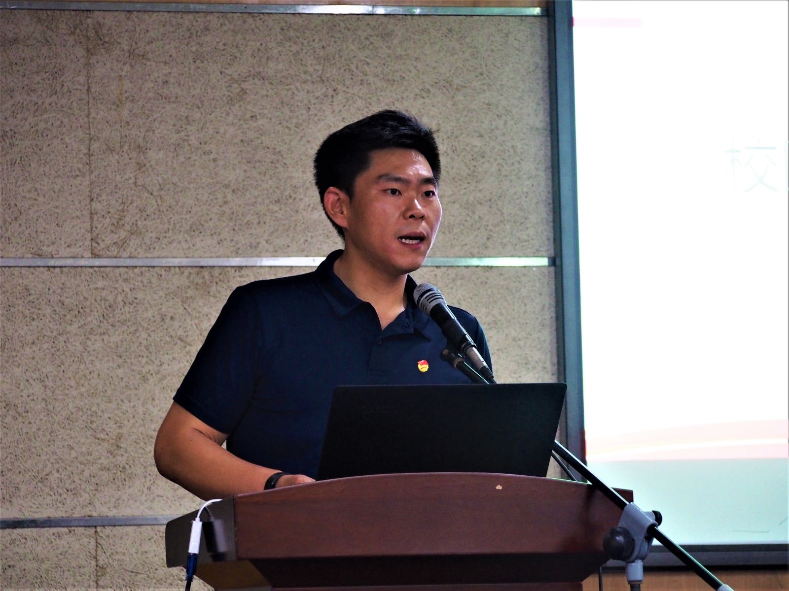 大会的最后团委书记朱丹老师发言,他肯定了上一届委员的工作,从工作、民主、热情、服务、引领五个方面向大家阐释如何做好青年领袖,为学生服务工作建设献出自己的一份力。并对未来团学联的发展提出了更高的期望与要求。
