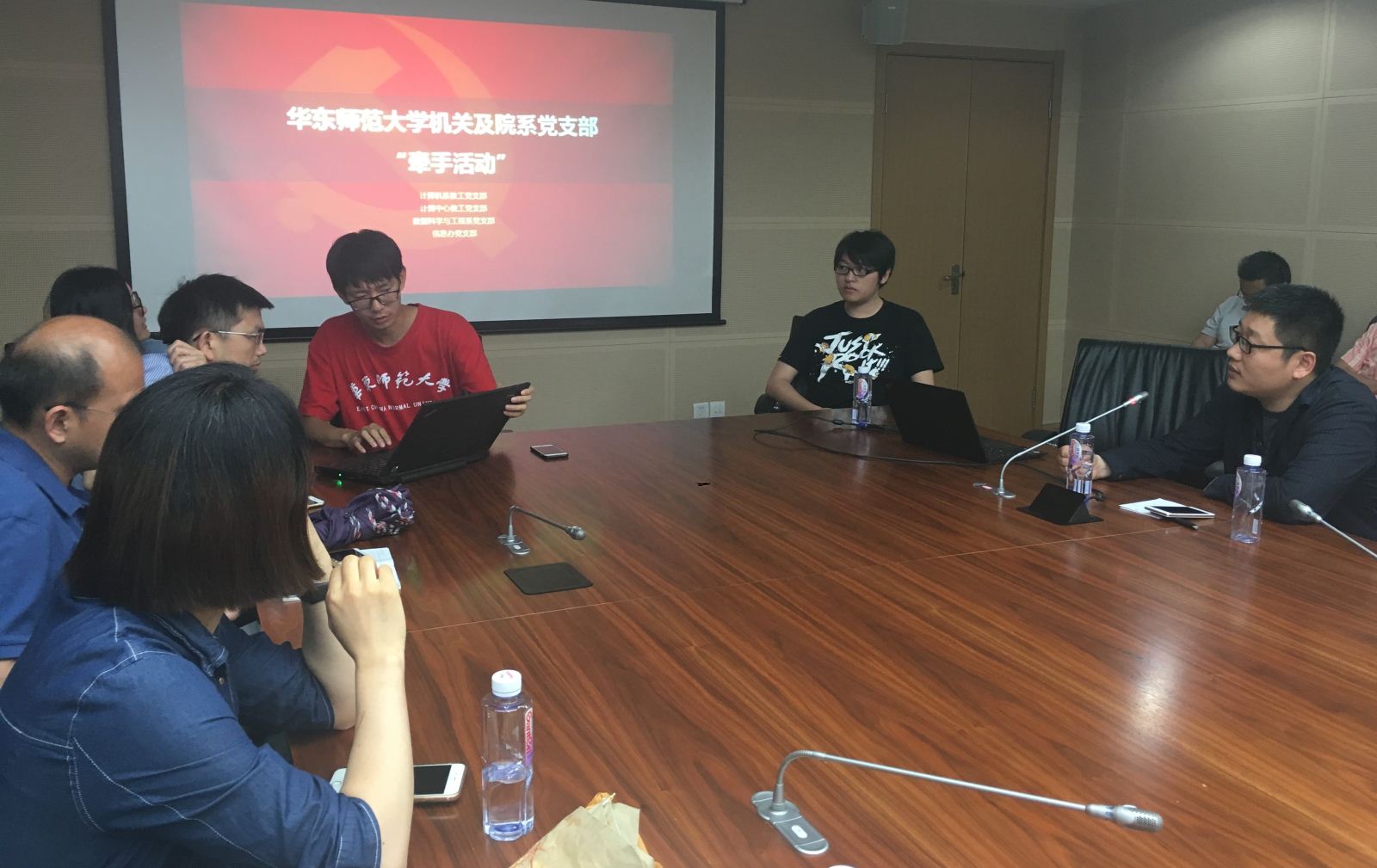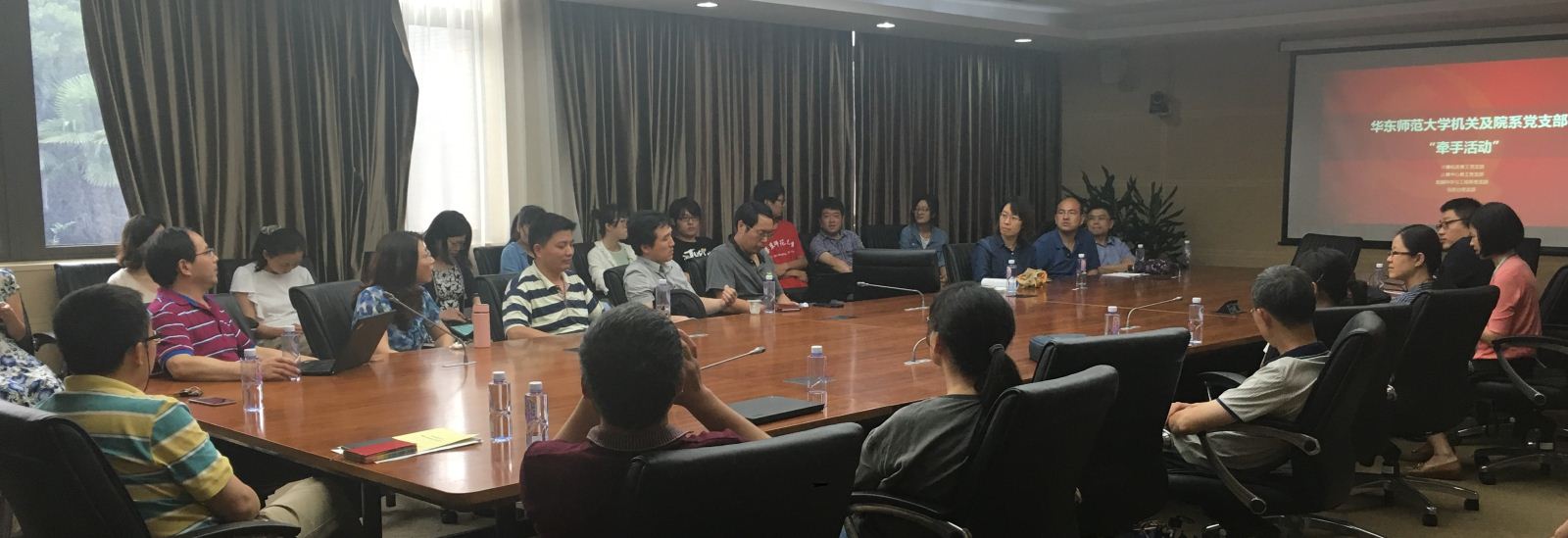 华东师范大学以加强机关职能部门和院系部门之间互动和了解为宗旨而开展的机关支部与院系教工支部一起过组织生活的“牵手”专项活动已进行了多年,取得了显著的成效。2017年6月21日下午,计算机科学与世俱杯sjb官网的计算机科学技术系、计算中心、数据科学与工程系三个教工党支部与信息办党支部在中山北路校区图书馆C203会议室,一起举行支部“牵手”活动,四个支部的党员共同参与了此次活动。