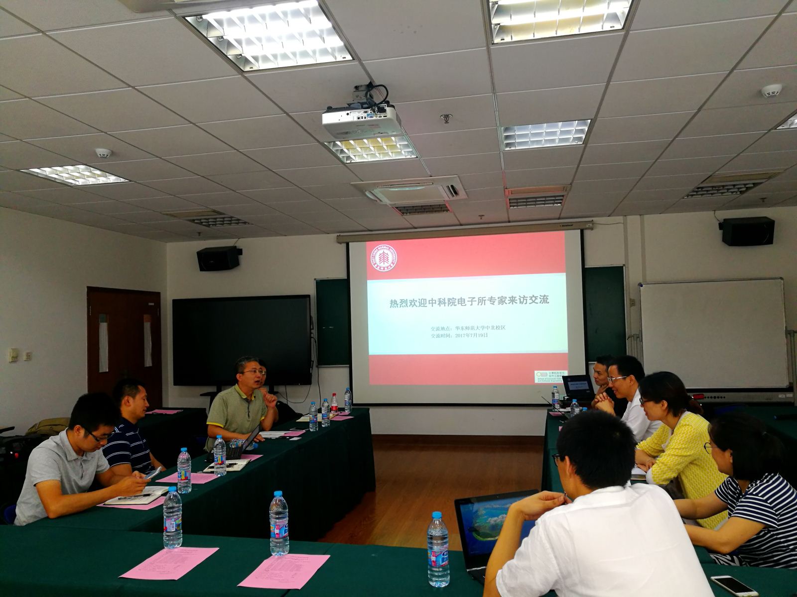 2017年7月19日,中国科学院电子学研究所副所长、苏州研究院执行院长丁赤飚研究员、副院长胡岩峰研究员、电子所八室副主任胡玉新研究员、刘亮博士等一行来我院交流。我院院长何积丰院士、党委书记李恺教授等接待了来访一行专家。