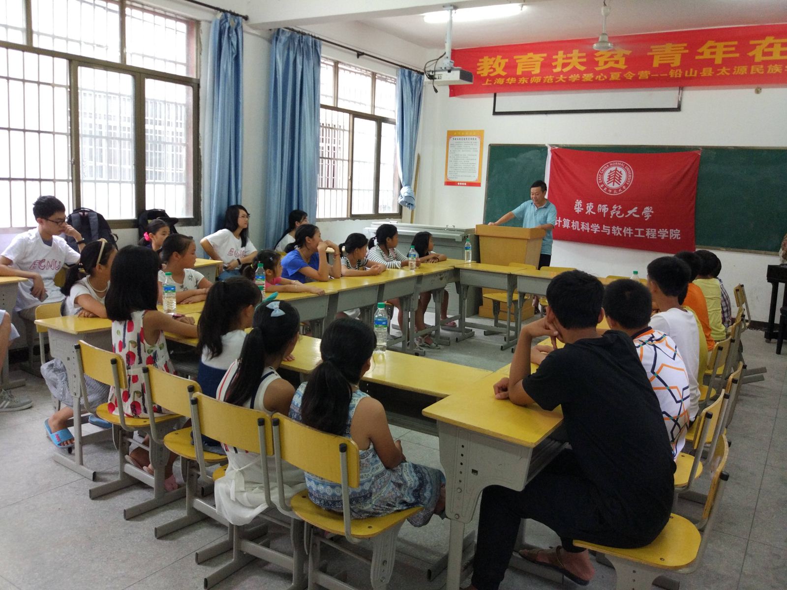 2017年8月15 日上午,华东师范大学计算机科学与世俱杯sjb官网暑期社会实践团队一行10人在指导老师叶林娟的带领下,前往江西省上饶市铅山太源民族学校,展开为期十天、以“科技一夏,遇见未来”为主题的支教活动。