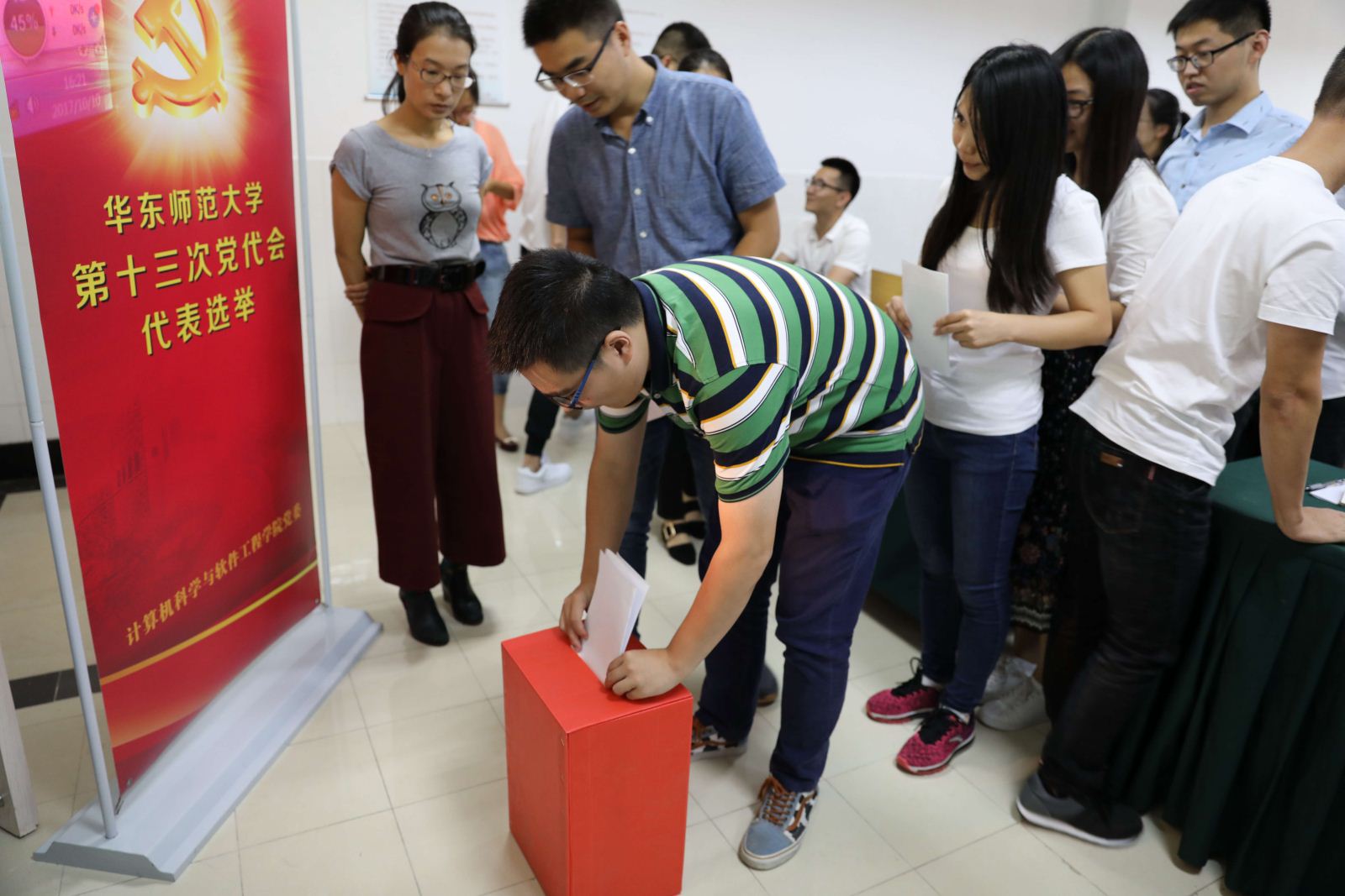 选举会议由学院常务副院长王长波同志主持,设监票人5名,计票人8名,大会应到党员代表97人,实到95人,超过应到人数的4/5,选举有效。经过投票和计票,产生教师代表11人,学生代表1人。梅兵副校长作为指定候选人参加了此次选举,也高票当选。通过选举产生校第十三次党代会代表,是党代会筹备工作的一项重要内容。学院党委精心组织,顺利完成了此次党代会代表的选举工作。