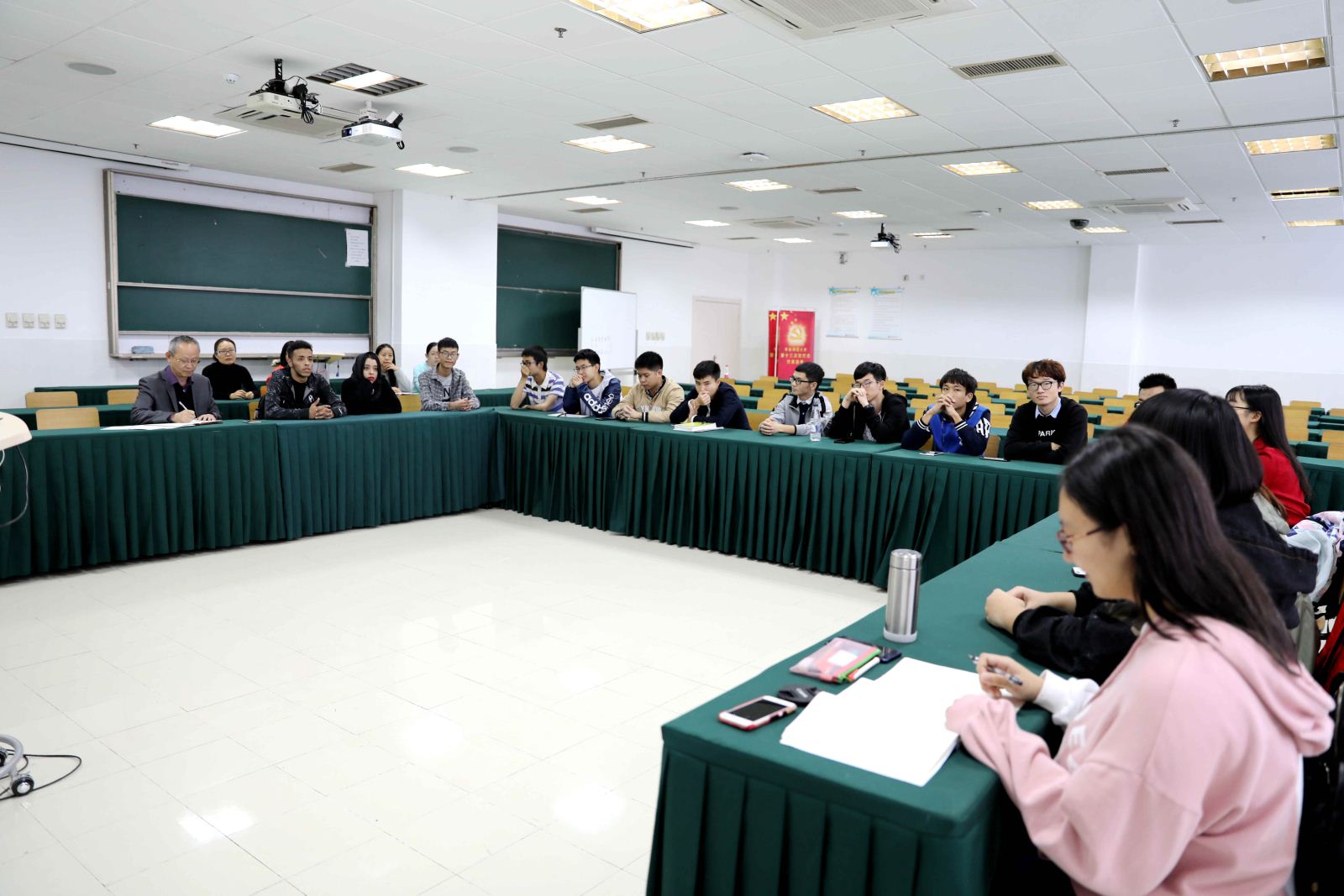 为帮助少数民族学生、留学生更好地融入大学生活、切实帮助他们解决学习中遇到的实际问题、将来能够顺利完成学业,10月25日下午,学院在理科大楼B222召开2017级少数民族学生、留学生座谈会。学院党委副书记兼副院长洪燕、教学副院长姜宁康、计算机系主任贺樑等领导、以及辅导员老师、教务员老师一起,与20多名参会的学生进行了座谈。