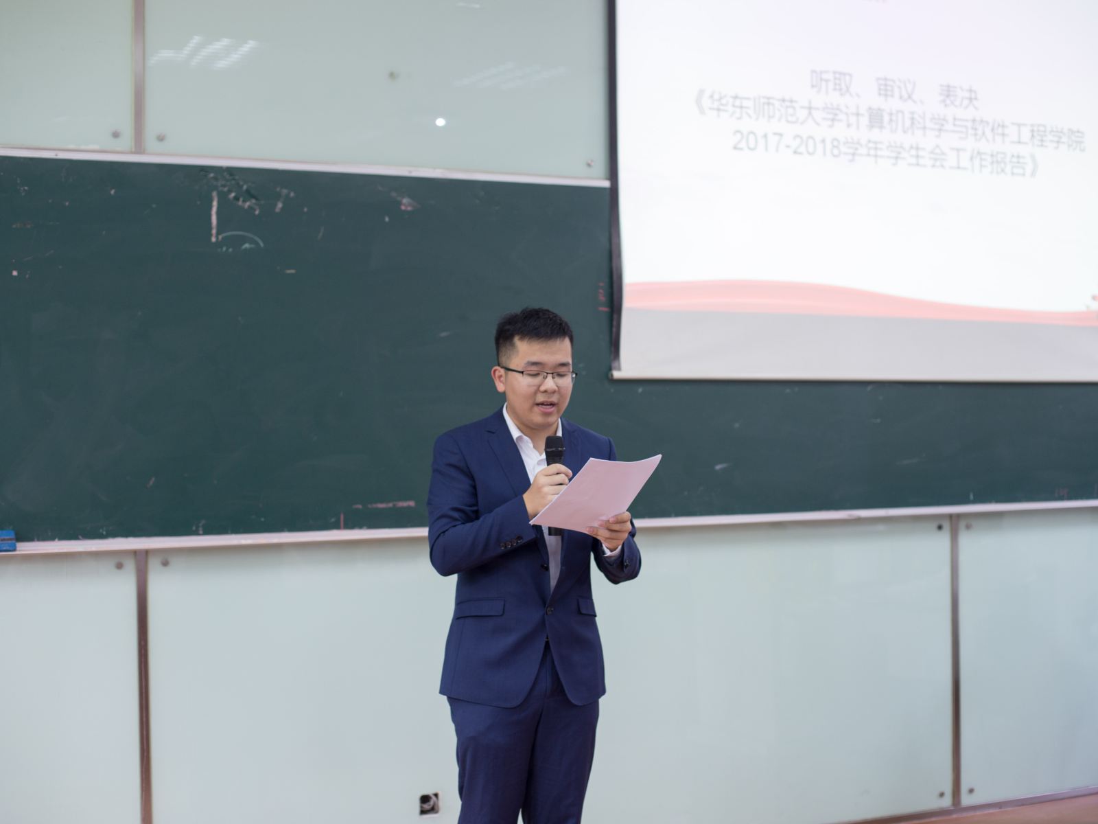 图三:学生会主席温伟浩作工作报告