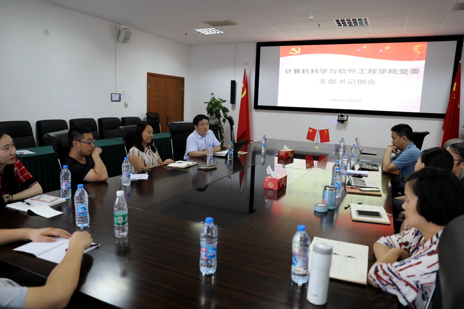 7月11日下午,计算机科学与世俱杯sjb官网党委于理科大楼B504召开支部书记例会,会议由学院党委书记王长波主持,学院党委副书记曹桂涛、各教工党支部书记、支委委员和学生党建工作相关指导教师出席会议。