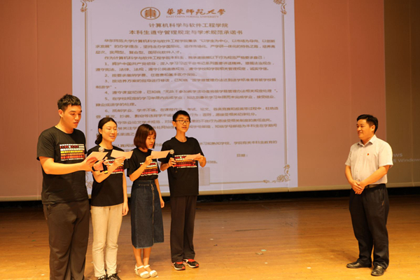 严格遵循学校、学院的管理规定,恪守学术道德和学术规范,是每一个学生都应当始终牢记的。开学典礼中,学院首次举行了新生代表进行遵守管理规定和学术规范承诺的环节。来自不同专业的本科和研究生代表,面向全体师生向学院作出了庄严的承诺。