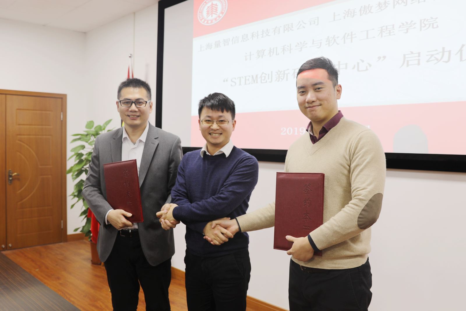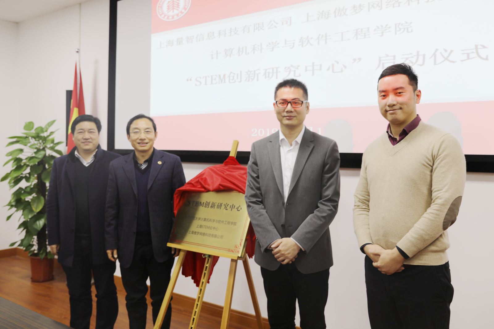 由上海量智信息科技有限公司(又称“上海STEM云中心”),上海傲梦网络科技有限公司(简称“傲梦编程”)和华东师范大学计算机科学与世俱杯sjb官网合作共建的“STEM创新研究中心”于3月11日揭牌启动。华东师范大学校长助理、教育发展基金会办公室兼校庆筹备办公室主任斯阳,校友会办公室副主任兼教育发展基金会办公室副主任朱捷,计算机科学与世俱杯sjb官网院长何积丰院士,学院党委书记兼常务副院长王长波教授,学院副院长王晓玲教授以及“STEM创新研究中心”主任金博,副主任张逸中、袁哲栋等20余人共同出席了此次启动会议。会议由学院副院长王晓玲教授主持。