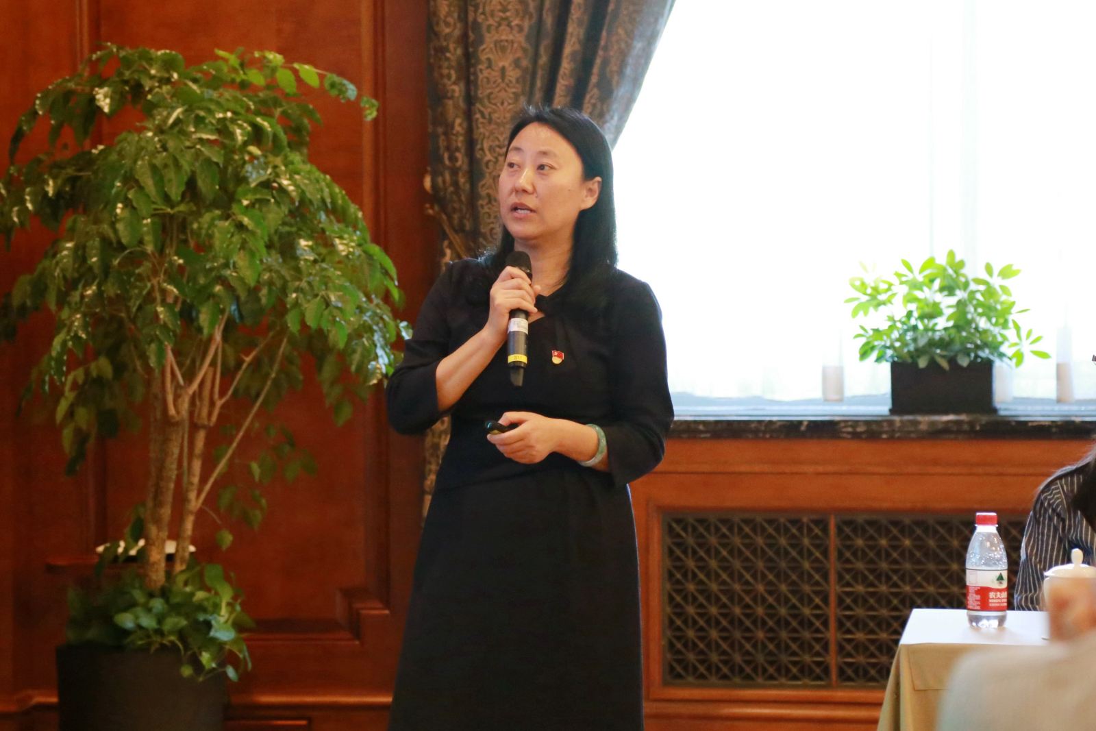 曹桂涛教授对中汇公司为学院设立的“中汇信息奖教金”和“中汇信息双创英才”优秀学生奖学金,以及为同学们提供的宝贵实习机会表示衷心感谢,并欢迎未来中汇公司前来学院进行交流。她鼓励在场学生在后续的交流环节中向身为学院校友联谊会会长的李正等学长学姐主动提问、积极学习。为了让中汇公司对学院整体发展情况有所了解,曹桂涛教授从学院架构、学科情况、师生情况、人才培养、科研项目以及基地建设等方面做一介绍。同时,她还介绍了计软学院党建的组织架构,并分享了学院以党建工作为核心、以体制机制为突破、以立德树人为宗旨、以产学研联动为依托、以创建文化名片为动力的特色工作。
