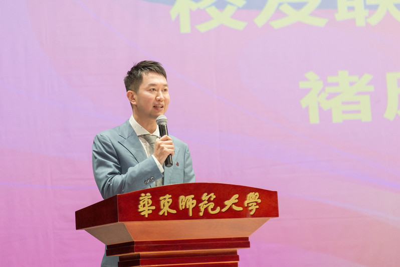 在华东师大党委书记梅兵和中国银行上海市分行正局级副行长项晞的见证下,学校副校级干部斯阳和中国银行上海市分行副局级资深合规专家刘英红代表双方签约。