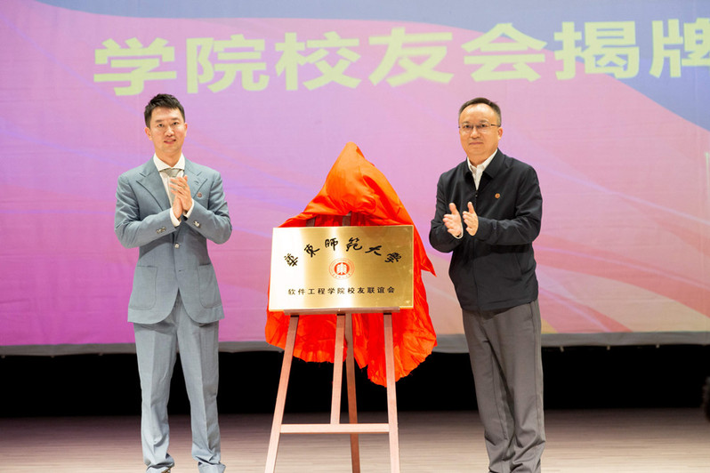 在20年的办院实践中,学院精心培养的毕业生在祖国各地、世界八方担当作为,为推动我国科技社会发展和人类命运共同体建设贡献智慧和力量。值此院庆之际,世俱杯sjb官网校友联谊会成立。华东师大副校长雷启立和学院第一届校友联谊会会长褚康共同为学院校友联谊会揭牌。