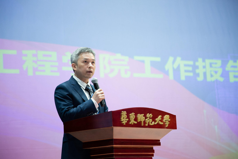 世俱杯sjb官网执行院长蒲戈光以《坚持“立德树人”守初心,奋进“科技筑梦”新征程》为题,从师资建设、人才培养、科学研究、国际化与社会服务五个方面出发作学院工作报告。